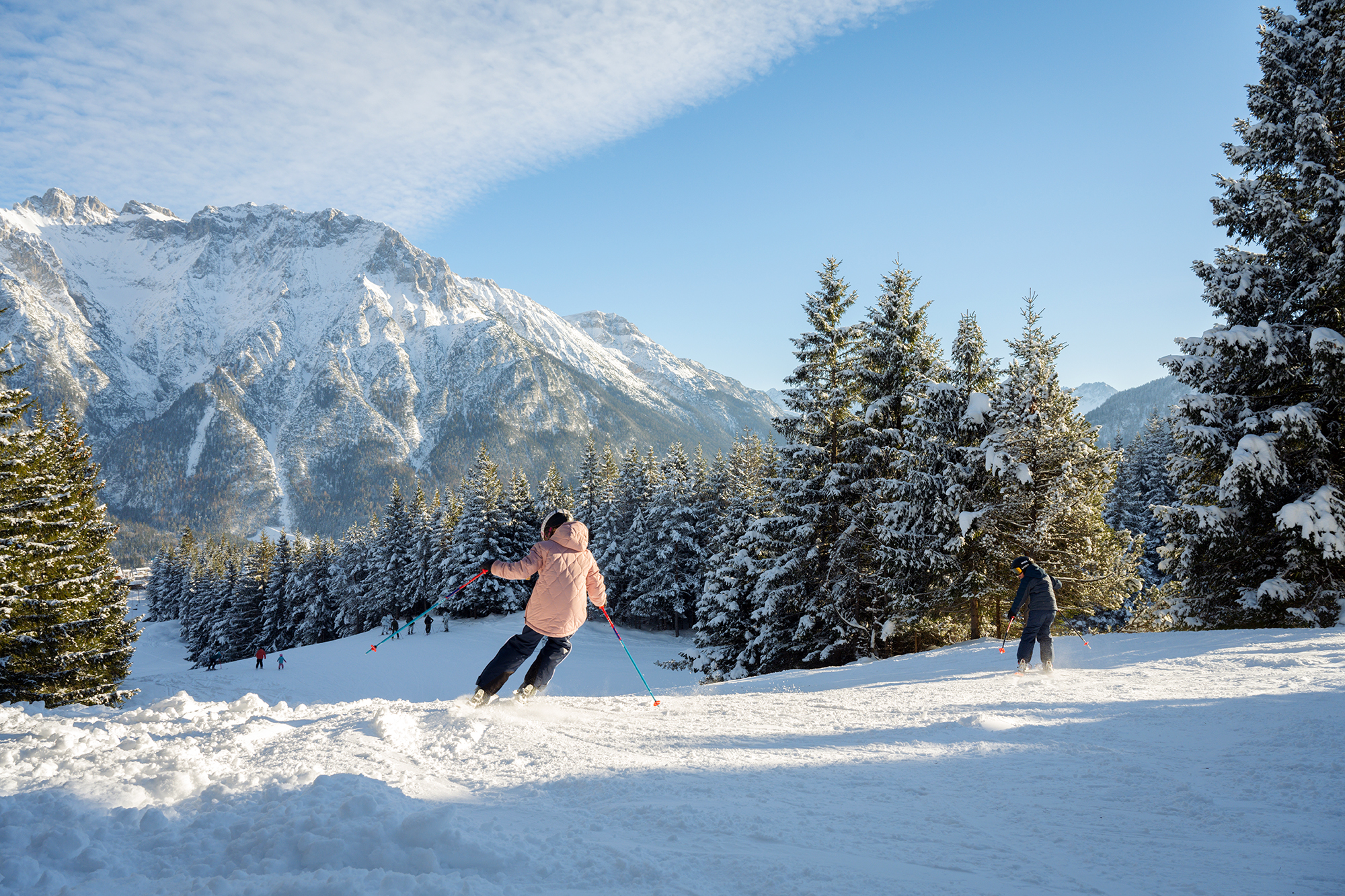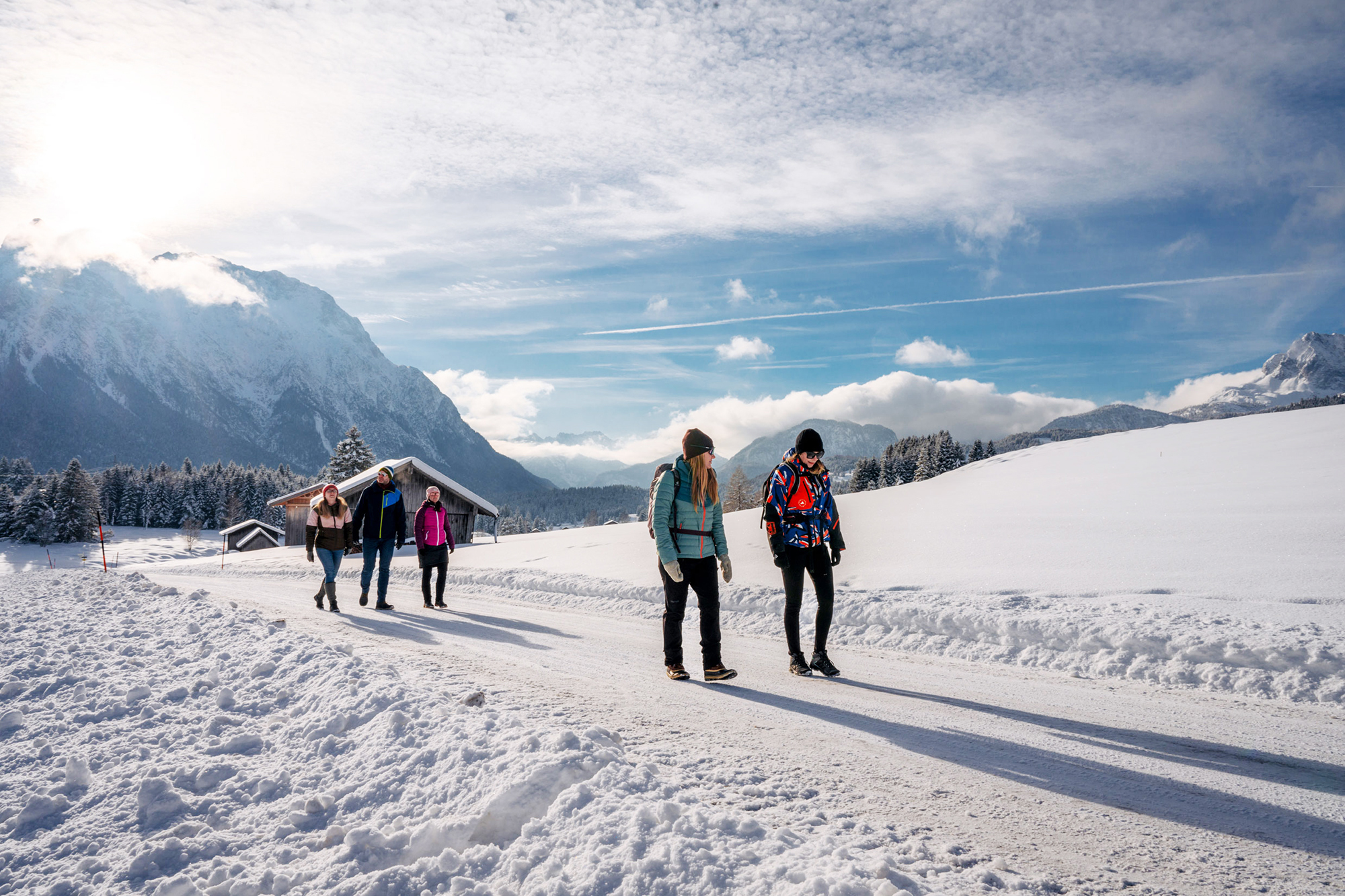 Die winterliche Berglandschaft rund um Mittenwald bietet eine Vielzahl an Möglichkeiten für Freizeit und Sport.